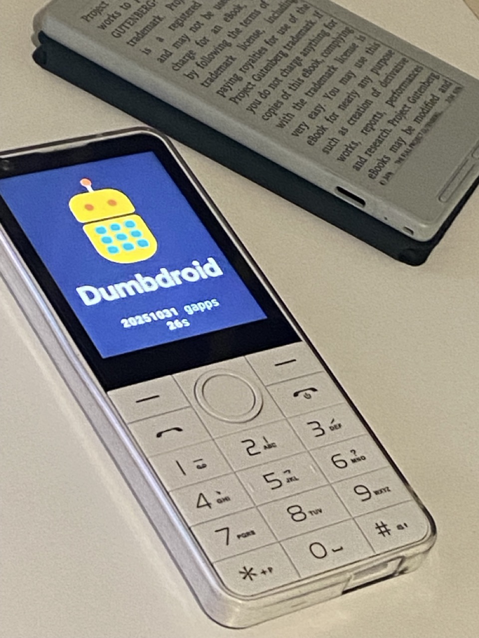 My right pocket used to be for my iPhone, it's now for by dumbdroid and a tiny ereader called the xteink x4. When I'm reaching for a distraction when I'm out and about I now only have the options of contacting friends or reading a book. I really like that choice. I find these devices go very well together.